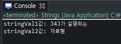 위의 코드와 같이 문자열을 작성하고 싶을 때는 String을 이용하여 작성을 하시면 됩니다.