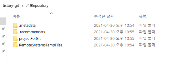 위에 만들어 둔 저장소와 연결을 위한 로컬 폴더를 자바를 이용하여 간단하게 만들어 놨습니다.