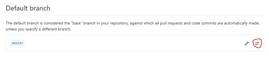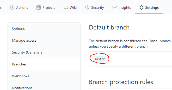 해당 메뉴에 접속하면 Default branch가 현재 master로 되어 있는 것을 확인할 수 있습니다.
