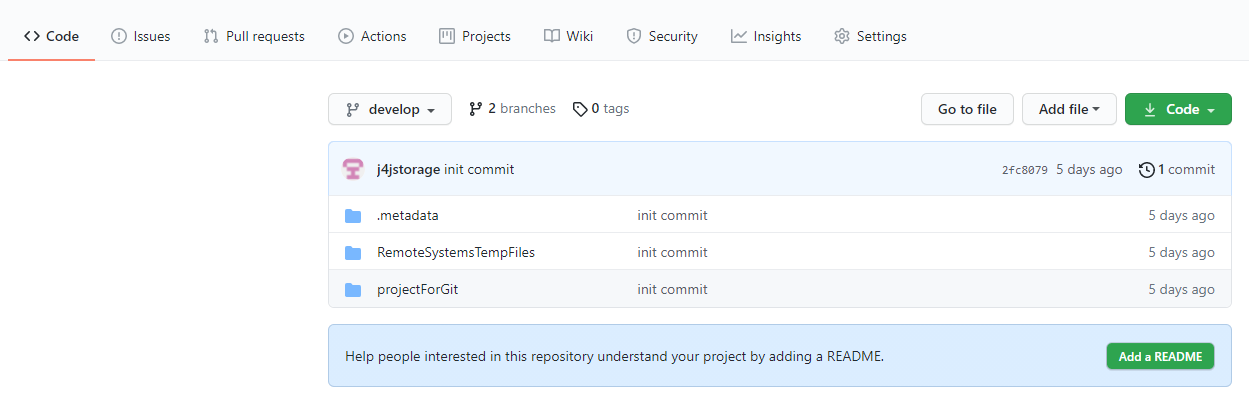 상단의 Code버튼을 누르면 다시 메인 페이지로 돌아가지는데 따로 만지지 않아도 처음에 보이는 브랜치가 develop브랜치로 변경되었습니다.