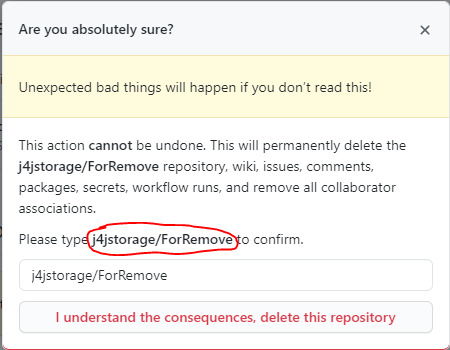 버튼을 클릭하게 되면 해당 Repository가 삭제되어 더 이상 확인할 수 없게 됩니다.
