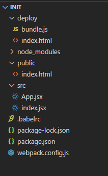 입력하고 조금만 기다리면 폴더 최상단에 deploy라는 폴더가 생기는 것을 확인할 수 있고 그 내부에는 bundle.js와 index.html 파일이 있는 것을 확인할 수 있습니다.