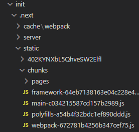 그럼 프로그래밍해둔 파일들이 빌드가 이루어지고 빌드가 완료되었을 경우 /.next/static/chunks에 들어가 보면 빌드된 파일을 확인할 수 있습니다.