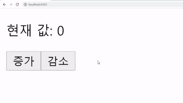 소스 코드를 위와 같이 한 뒤 서버를 실행시키면 현재 값과 증가 버튼, 감소 버튼이 보이게 됩니다.