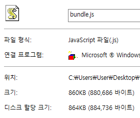 위의 4가지 설정을 모두 해줬다면 tree shaking 설정이 모두 완료되어 번들 파일 크기가 줄어드는 것을 확인하실 수 있습니다.