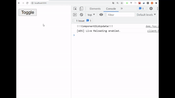 - Toggle버튼을 누를 때 마다 !!!ComponentDidUpdate!!!가 출력됩니다.