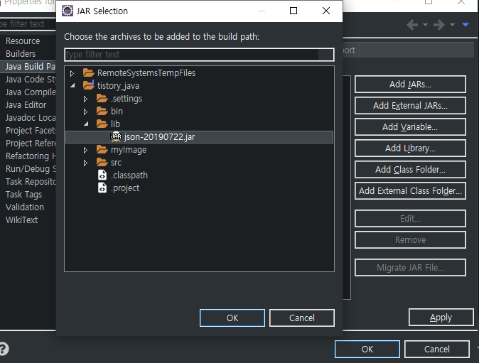 [ 4. Add Jars... → jar파일 선택 → OK ]