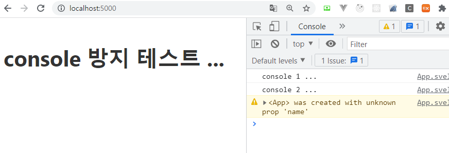 그리고 출력 방지 설정을 한 뒤 간단한 테스트를 위해 App.svelte파일에 다음과 같이 작성해보겠습니다.