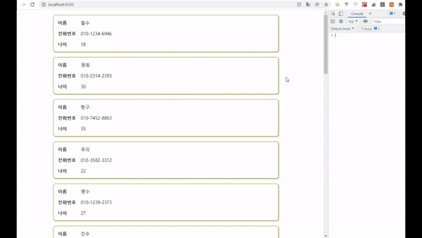 저는 자체적으로 다음과 같이 데이터를 불러오는 서버를 만들어놨고 화면에서 해당 데이터를 계속 불러옴으로 써 Infinite Scroll을 구현해보도록 하겠습니다.