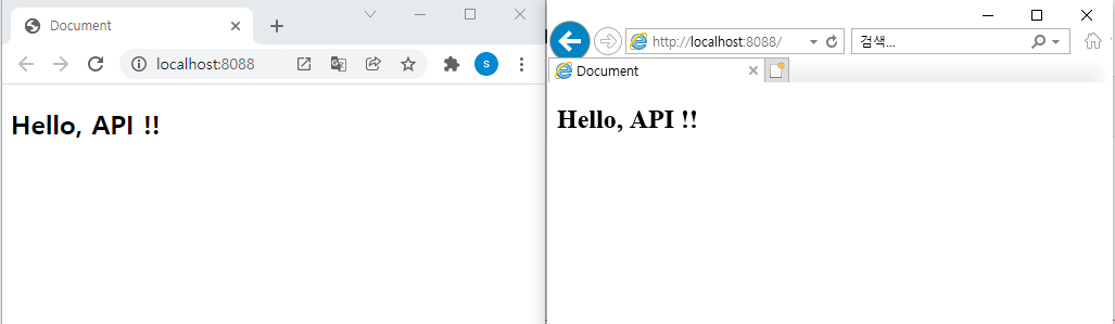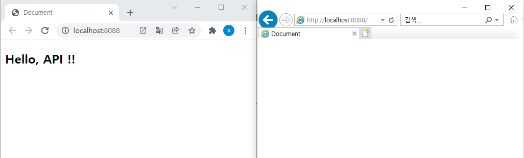 위의 설정을 하기 전에는 크롬과 IE를 각각 접속했을 때 다음과 같은 화면을 마주할 수 있었습니다.