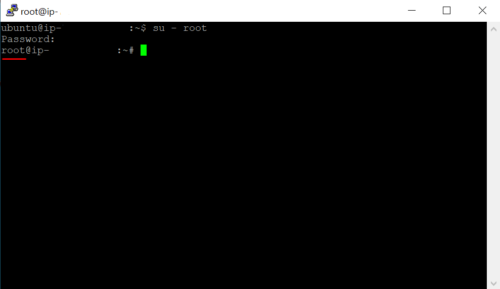 올바른 비밀번호를 입력할 경우 다음과 같이 접속 계정이 root로 변경되는 것을 확인할 수 있습니다.