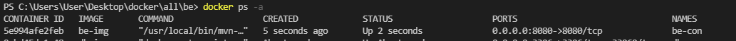 $ docker run --name be-con -p 8080:8080 -d be-img
