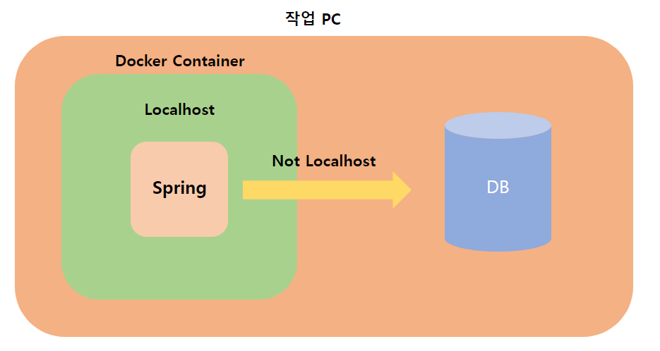 그렇기 때문에 내부에서 동작되고 있는 Spring이 생각할 때 localhost는 Docker Container 내부를 의미하기 때문에 실제 localhost에서 실행되고 있는 DB를 인지하지 못합니다.