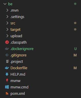 Dockerfile을 이용할 거기 때문에 터미널을 이용해 be폴더로 접근해줍니다.
