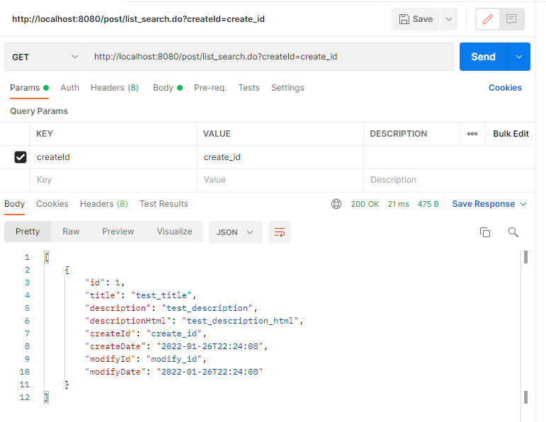 제가 구현한 것은 포스트맨을 이용해 API를 호출해보면 다음과 같은 결과를 만들어줍니다.