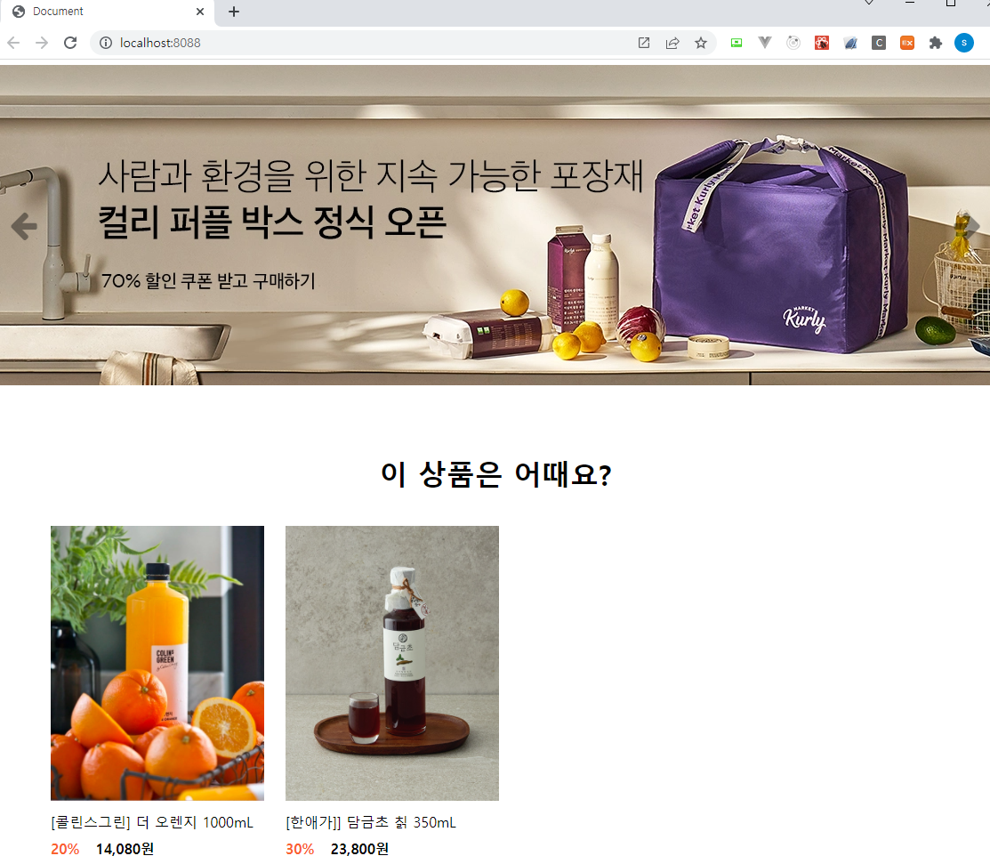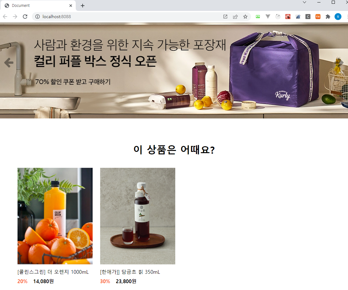 테스트 화면으로 마켓 컬리 카피 화면을 생성하려고 합니다.