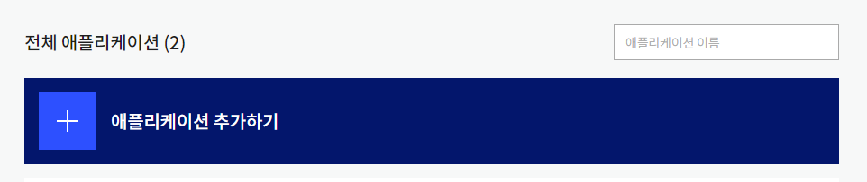 클릭하면 내 애플리케이션 목록들과 함께 애플리케이션 추가하기 버튼이 보일 것입니다.