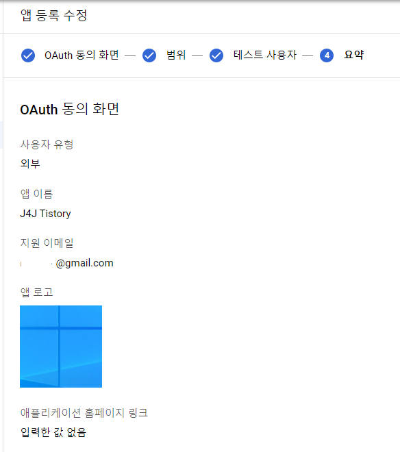 그러면 다음과 같이 지금까지 등록한 설정에 대한 요약된 내용들을 확인할 수 있습니다.