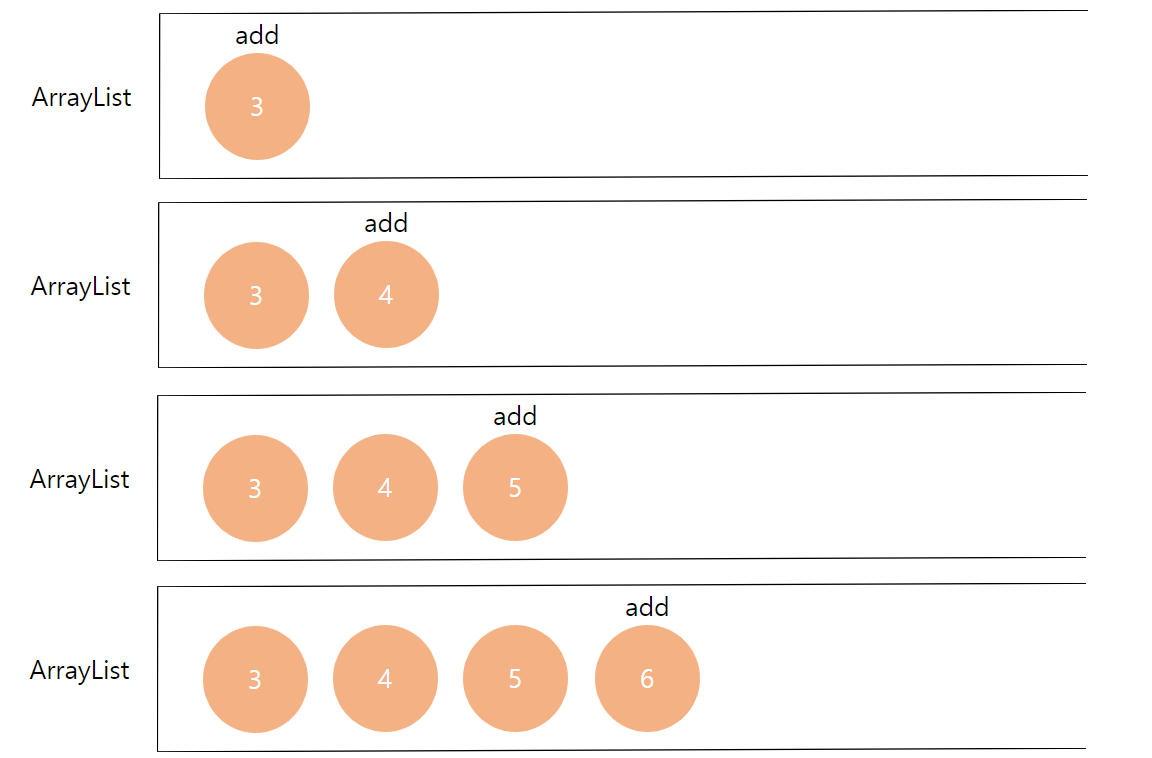 ArrayList는 크기가 정해지지 않은 배열로 배열처럼 선언할 때 크기를 정해두는 것이 아니어서 유동적으로 데이터를 집어넣고 빼고 할 수 있습니다.