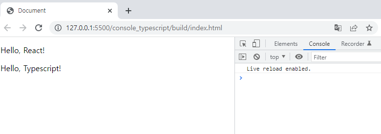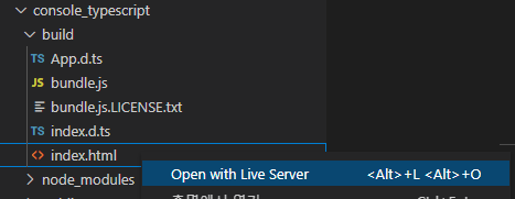 마지막으로 build가 이루어진 index.html 파일을 우 클릭하여 Live Server로 실행하겠습니다.