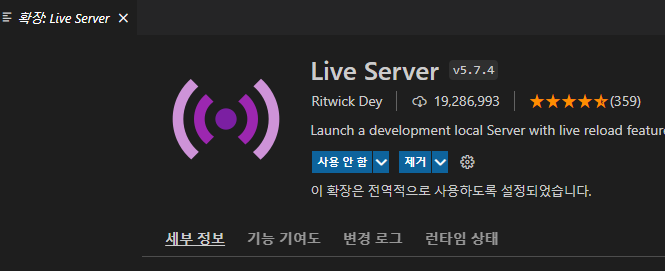 그리고 build 된 파일을 실행하기 위해 VSCode에서 Live Server Extension을 설치하겠습니다.