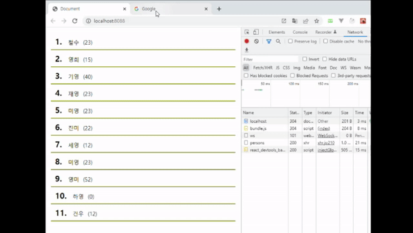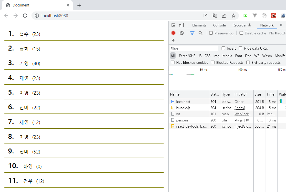 여기서 확인해야 되는 부분은 Network탭에 persons를 호출하는 것입니다.