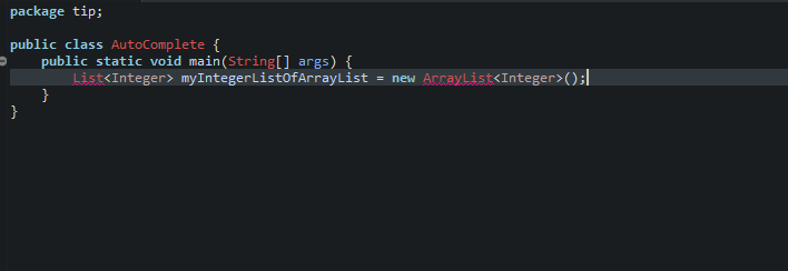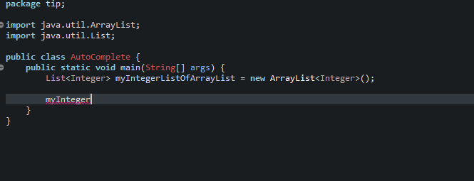 이때 이름을 모두 입력하는 것이 아니라 myInteger정도까지만 입력하고 Ctrl + Space를 누르면 자동으로 myIntegerListOfArrayList라는 이름을 이클립스에서 만들어줍니다.