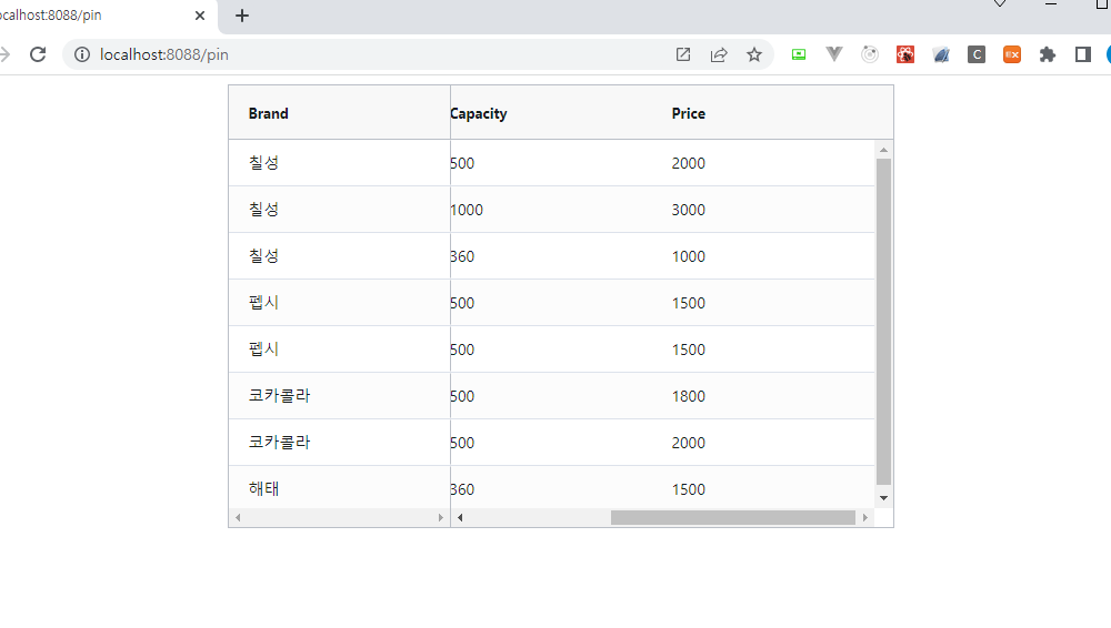 그리고 우측으로 스크롤을 해보면 다음과 같이 brand는 왼쪽 위치에 고정되어 있는 것을 확인할 수 있습니다.