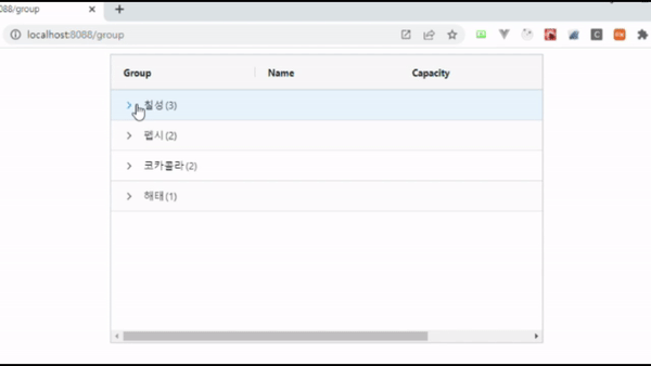 위에 설정된 그룹화 내용을 확인하기 위해 펼쳐보면 다음과 같습니다.