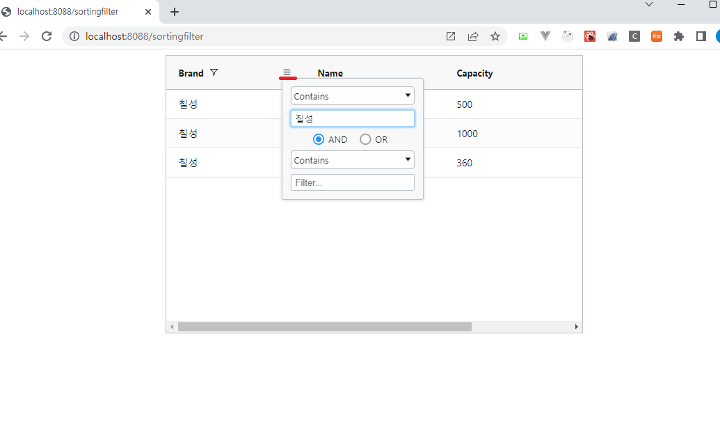 AG Grid를 사용하여 구현할 경우 정렬 및 필터 기능을 설정하는 것은 정말 간단한 작업입니다.