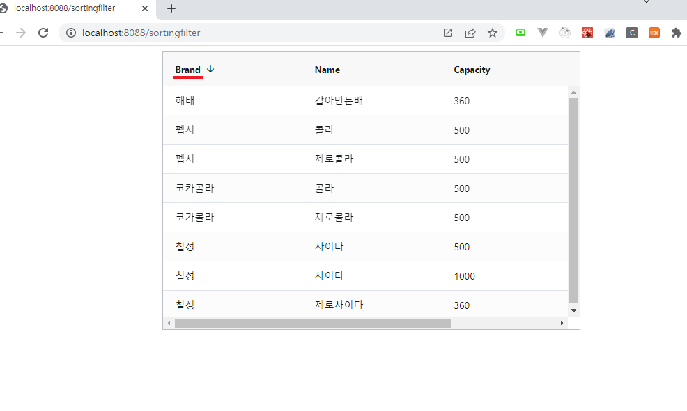 하지만 다음과 같이 필드를 클릭하면 클릭된 필드에 맞게 정렬이 되는 것을 확인할 수 있습니다.