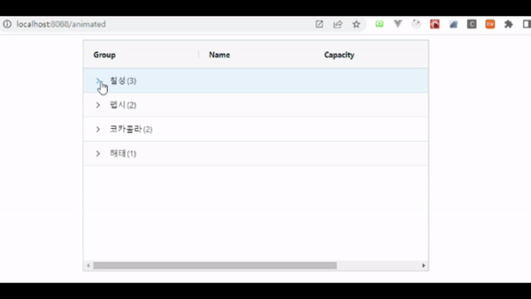 위와 같이 단순하게 animateRows값에 true를 넣어 애니메이션 설정을 해봤습니다.
