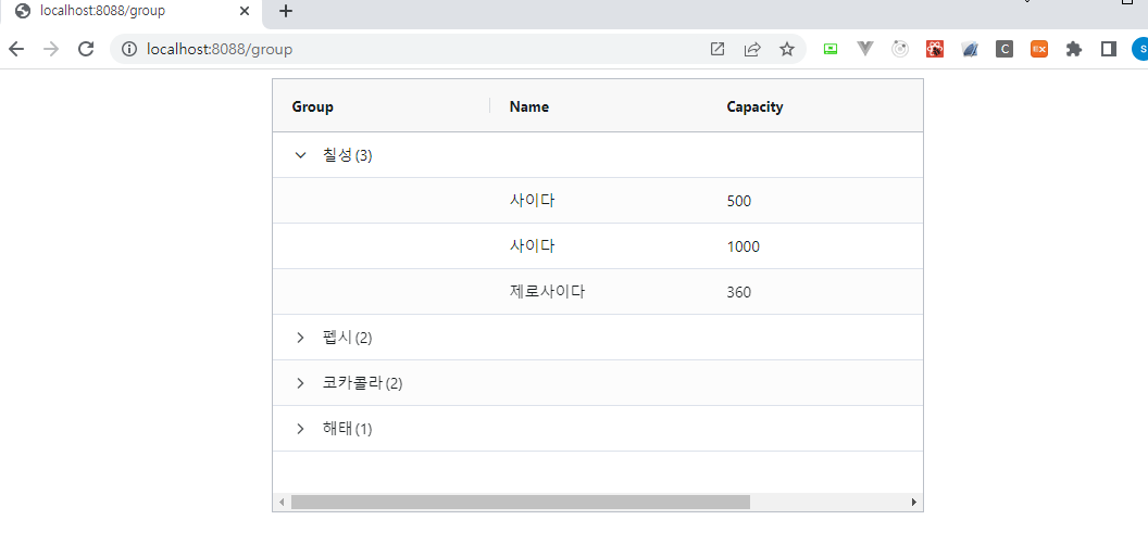 코드를 실행해보면 다음과 같이 그룹화가 이루어진 화면을 확인할 수 있습니다.