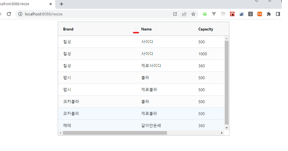 { field: 'brand', resizable: true }, // brand 필드만 사이즈 변경 설정