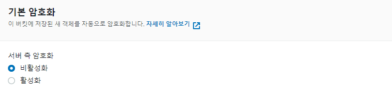 버킷에 저장되는 객체를 자동으로 암호화 해주는 설정입니다.