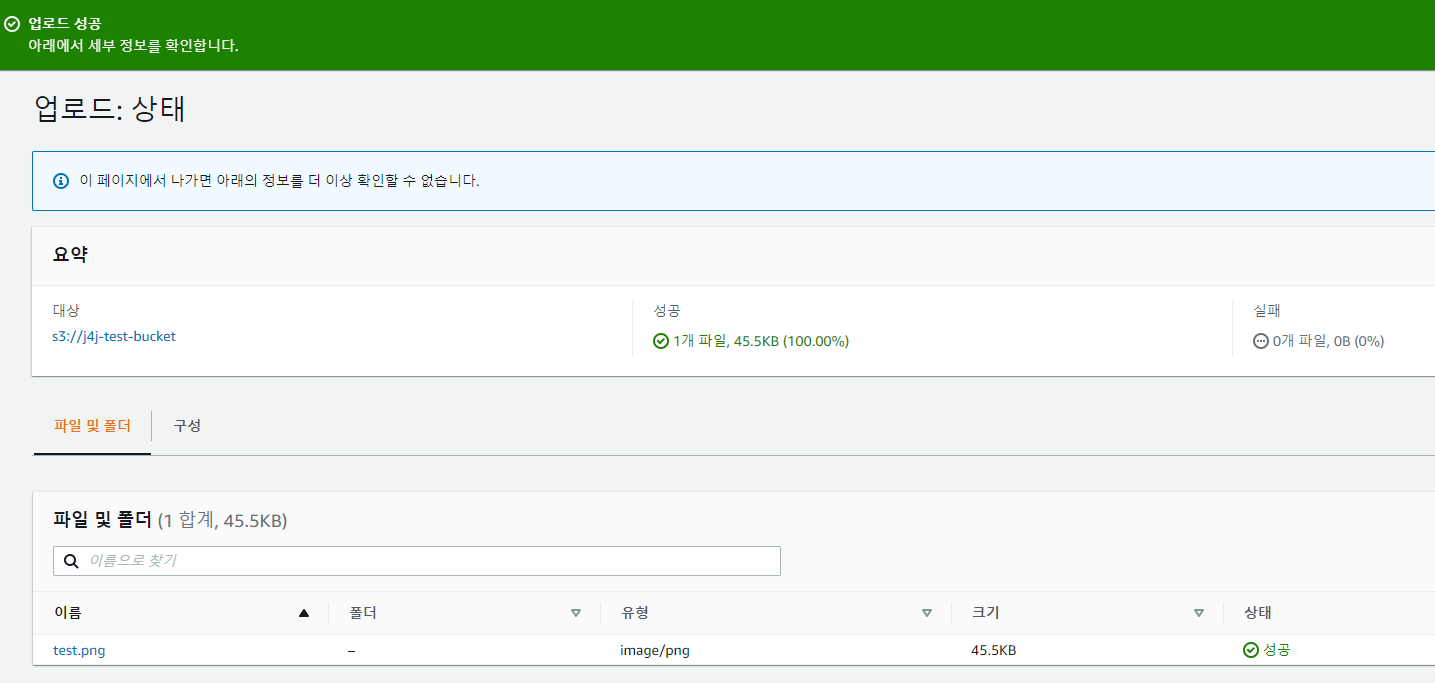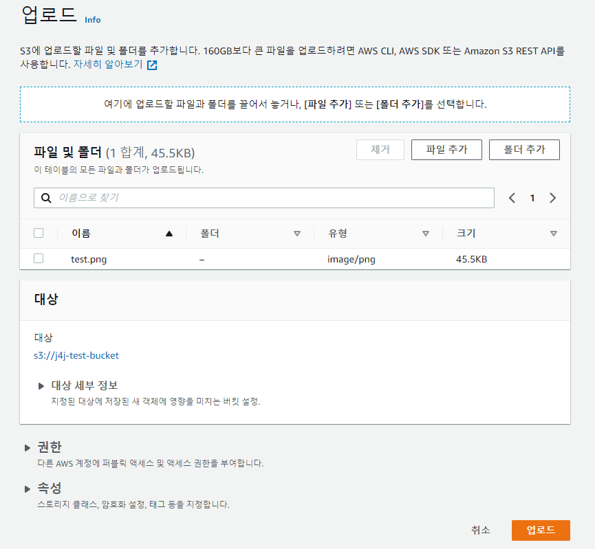 버킷의 객체 탭으로 넘어가서 이미지를 업로드해보고 정상적으로 화면에 보이는지 테스트해보겠습니다.