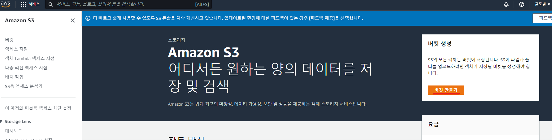 모든 설정을 마치셨다면 하단에 있는 버킷 만들기를 클릭하시면 됩니다.