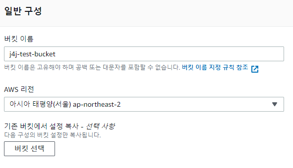 일반 구성에서는 버킷 이름과 AWS 리전을 선택해주면 됩니다.