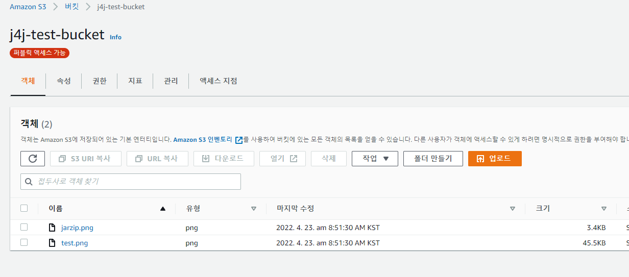 또한 S3에서도 업로드된 것이 확인 가능합니다.