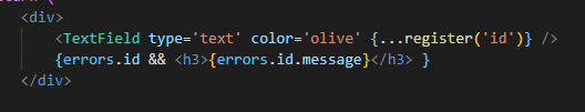 <TextField type='text' color='olive' ref={wrapperRef} register={register('id')} />
