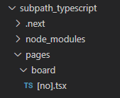 만약 Next에서도 위와 같은 경로를 사용하고 싶다면 파일 구조를 활용해야 되고 다음과 같은 파일 구조를 구성하면 위와 같은 경로를 사용하는 것과 동일한 결과를 만들어냅니다.