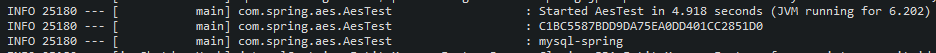 위와 같이 코드를 작성한 뒤 MySQL과 동일한 결과를 만들어내는지 "mysql-spring" 이라는 평문을 이용하여 테스트를 해보겠습니다.
