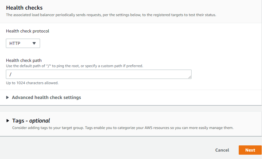 그리고 Health checks도 아래와 같이 하고 Next를 눌러줍니다. (was도 동일)