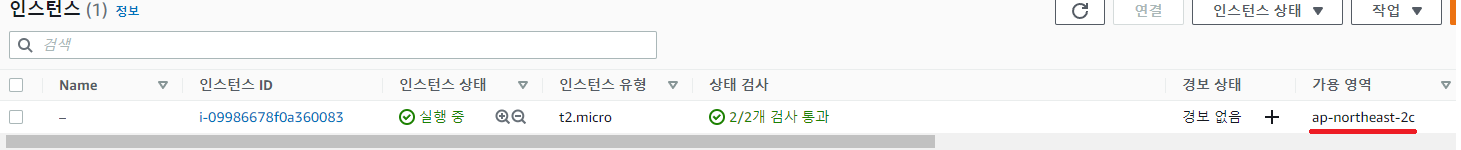 ALB 설정에 참고하기 위해 ALB가 사용될 EC2의 가용 영역을 확인해줍니다.