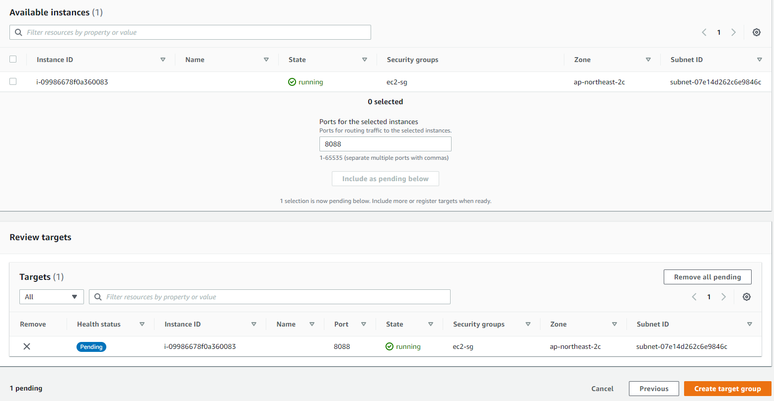 저 같은 경우 target group을 web/was별로 각각 모두 만들어 줬습니다.