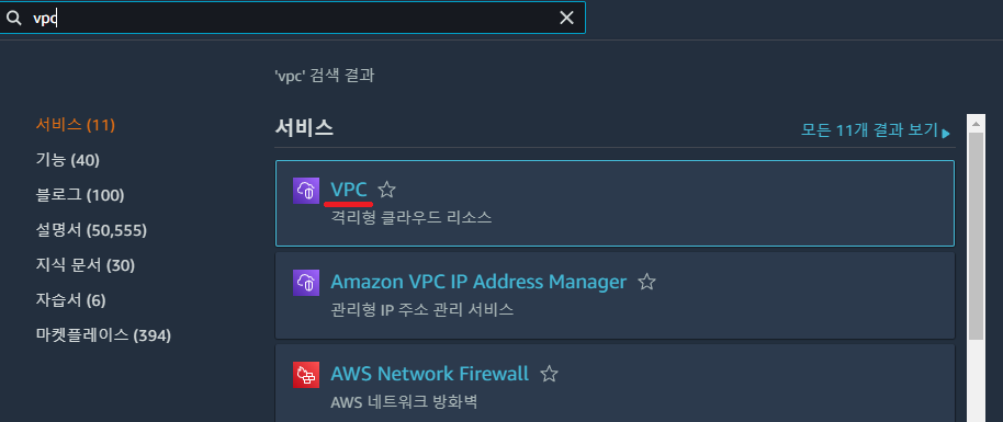 먼저 사용할 VPC를 선택해줍니다.