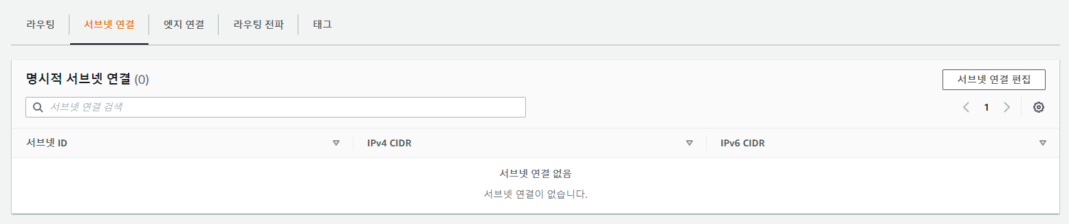 이번엔 서브넷 연결 탭을 클릭한 뒤 서브넷 연결 편집 버튼을 클릭해줍니다.