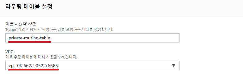이름은 자유롭게 입력, VPC는 Private Subnet을 생성한 VPC로 선택해주시면 됩니다.