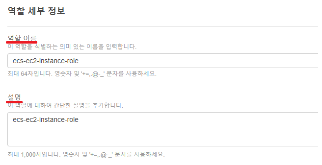 - 오토스케일을 위한 AmazonEC2ContainerServiceAutoscaleRole (선택)