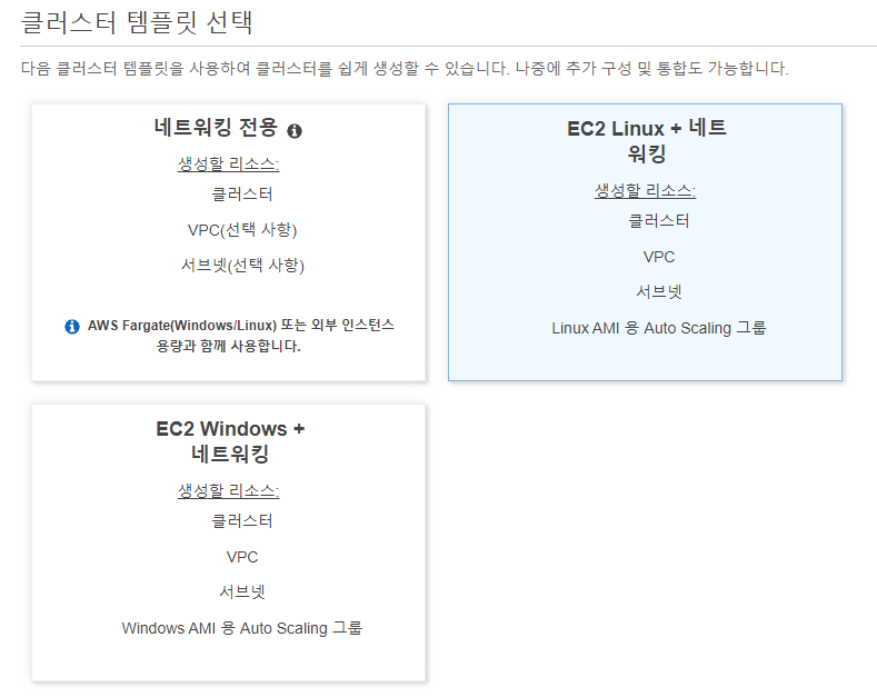 이번 글에서는 EC2 인스턴스를 이용하여 ECS 사용 환경을 구축할 예정이기에, 나중에 기회가 된다면 Fargate를 이용해서 ECS 사용 환경도 구축해보겠습니다.